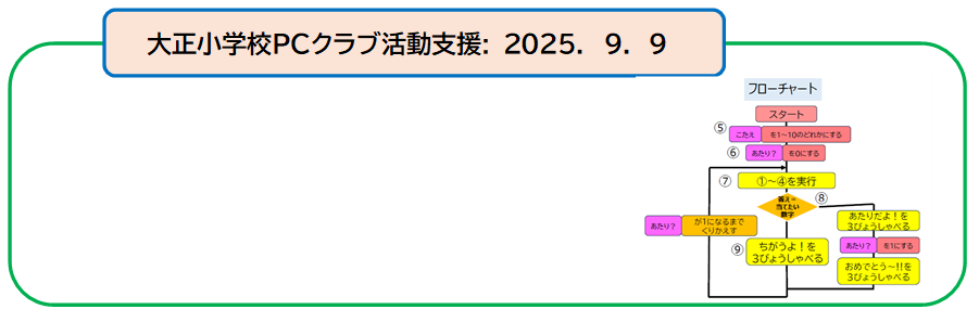 PCクラブ活動で、部員の児童(24名)とプログラミングの基本とプロゼミで